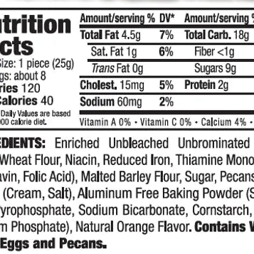 Delallo Orange Pecan Biscotti presents a distinctive flavor combination in a 7oz format, marrying bright citrus with rich, buttery pecans. These twice-baked Italian cookies deliver crisp texture and complex taste that evolves with each bite, making them exceptional for dunking in coffee or enjoying alongside dessert beverages. The aromatic orange essence complements the natural pecan richness, creating an sophisticated cookie experience. Ideal for discerning palates seeking biscotti with memorable flavor depth and authentic Italian tradition.